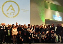 En esta edición han recibido la A de oro, las empresas industriales Aislantes Sólidos, GAMESA, MICRODECO y ASLE-Agrupación de Sociedades Laborales de Euskadi; el Colegio P. Andrés de Urdaneta; la entidad del tercer sector social Gorabide y la Organizacion Sanitaria Integrada Donostialdea de Osakidetza.