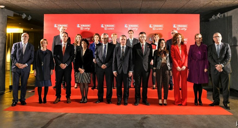 EROSKI celebró el pasado 12 de marzo un acto en la Alhóndiga de Bilbao, en el Azkuna Zentroa, con la presencia, entre otros, del lehendakari Iñigo Urkullu, las consejeras de Desarrollo Económico, Arantxa Tapia; Turismo, Sonia Pérez, y Trabajo, Mª José San José, así como de la ministra de Educación, Isabel Celáa.