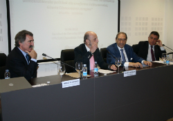 Participaron en la Conferencia-debate: Andrés Aberasturi (Madrid, 1948) periodista y escritor que en la actualidad es columnista de OTR (Europa Press) y participa habitualmente en diversas tertulias; y Rafael Calvo Ortega (El Espinar, Segovia, 1933) que fue ministro de Trabajo durante el Gobierno de UCD presidido por Adolfo Suárez entre 1978 y 1980; entre 1987 y 1994 fue diputado al Parlamento Europeo por el CDS; Catedrático de Derecho Financiero y Tributario en la Universidad Complutense de Madrid; y miembro de la Real Academia de Jurisprudencia y Legislación; y vinculado a la Economía Social desde su etapa de ministro de Trabajo.