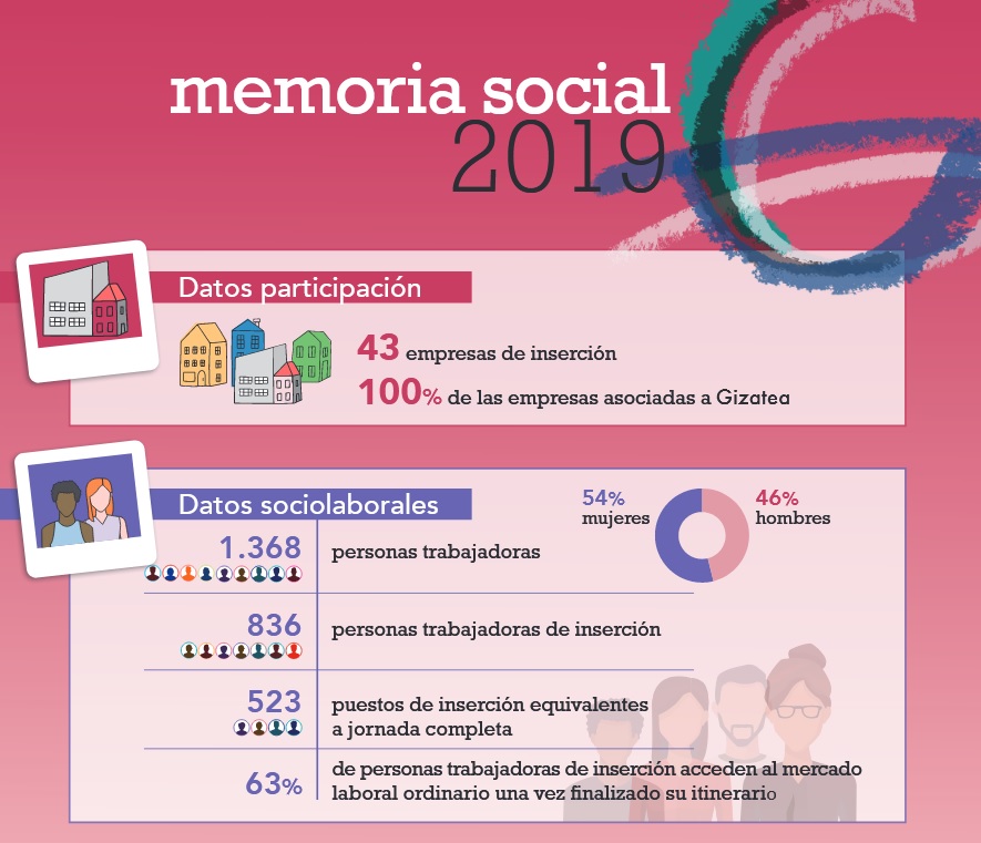 En la publicación, GIZATEA (Asociación de Empresas de Inserción del País Vasco) recoge los principales datos correspondientes a las Empresas de Inserción de la C.A. de Euskadi pertenecientes a su red.
