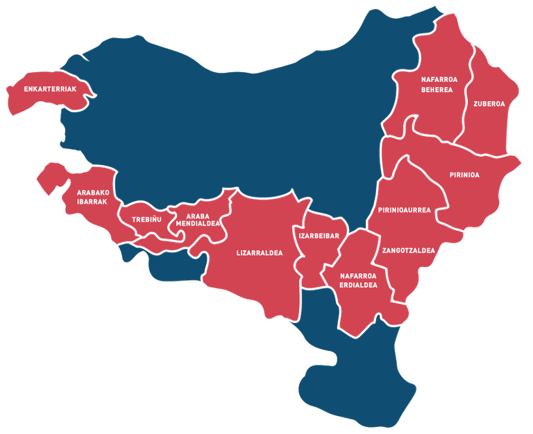 El programa “Hauspotu” se pondrá en marcha en los diferentes ámbitos que conforman la “pasión” de Euskal Herria. En el mapa dibujan medio círculo desde los Pirineos hasta las Encartaciones, pasando por la zona media de Navarra y la montaña alavesa.