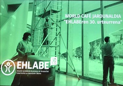 Para debatir sobre los retos y acciones a llevar a cabo para mejorar la empleabilidad de las personas con discapacidad EHLABE (Euskal Herriko Lan Babestuaren Elkarteak) organizó una jornada world café en el Kursaal de Donostia, dentro del 30 aniversario de la Asociación.