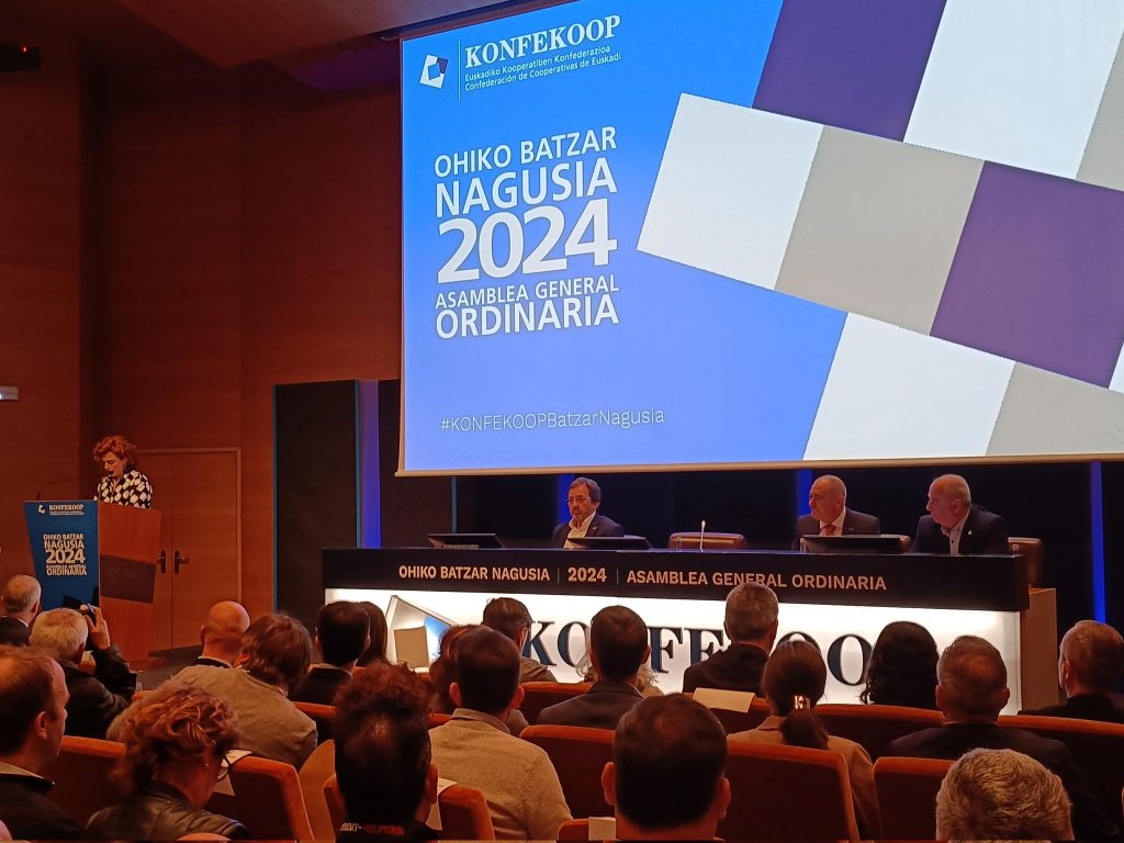 KONFEKOOP ha celebrado su Asamblea General Ordinaria de 2024 en el Palacio Euskalduna de Bilbao, a la que han asistido más de un centenar de representantes de las empresas cooperativas asociadas a la Confederación de Cooperativas de Euskadi y una amplia representación institucional encabezada por el Lehendakari Iñigo Urkullu, Juan Mari Aburto, alcalde de Bilbao, Elena Pérez Barredo, viceconsejera de Trabajo y Seguridad Social, entre otros.