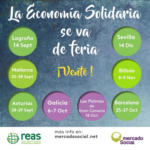 Como cada comienzo de curso desde hace varios años, arranca la nueva temporada de ferias de la Economía Solidaria y los Mercados Sociales en varias ciudades, completándose así el cartel anual con otras que ya han tenido lugar.