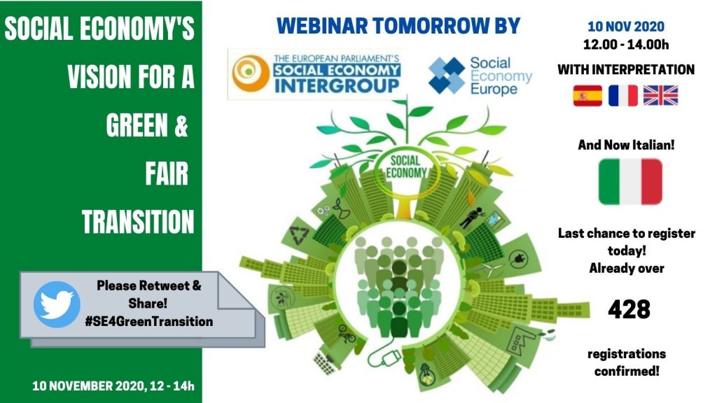 El pasado 10 de noviembre, se llevó a cabo la audiencia pública online del Intergrupo de Economía Social sobre la visión de la economía social para una transición verde y justa, en la cual se analizó cómo la economía social contribuye a la transición energética hacia fuentes renovables y viviendas sostenibles y a una economía circular que genere oportunidades de trabajo para todos.