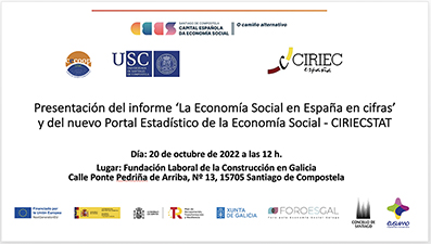 CIRIEC-España celebrará el próximo 20 de octubre en Santiago de Compostela, capital española de la Economía Social 2022, un gran acto de presentación pública del informe ‘La Economía Social en España en cifras’, y de lanzamiento del nuevo Portal estadístico de la Economía Social en España CIRIECSTAT en la sede Fundación Laboral de la Construcción … Continuar leyendo