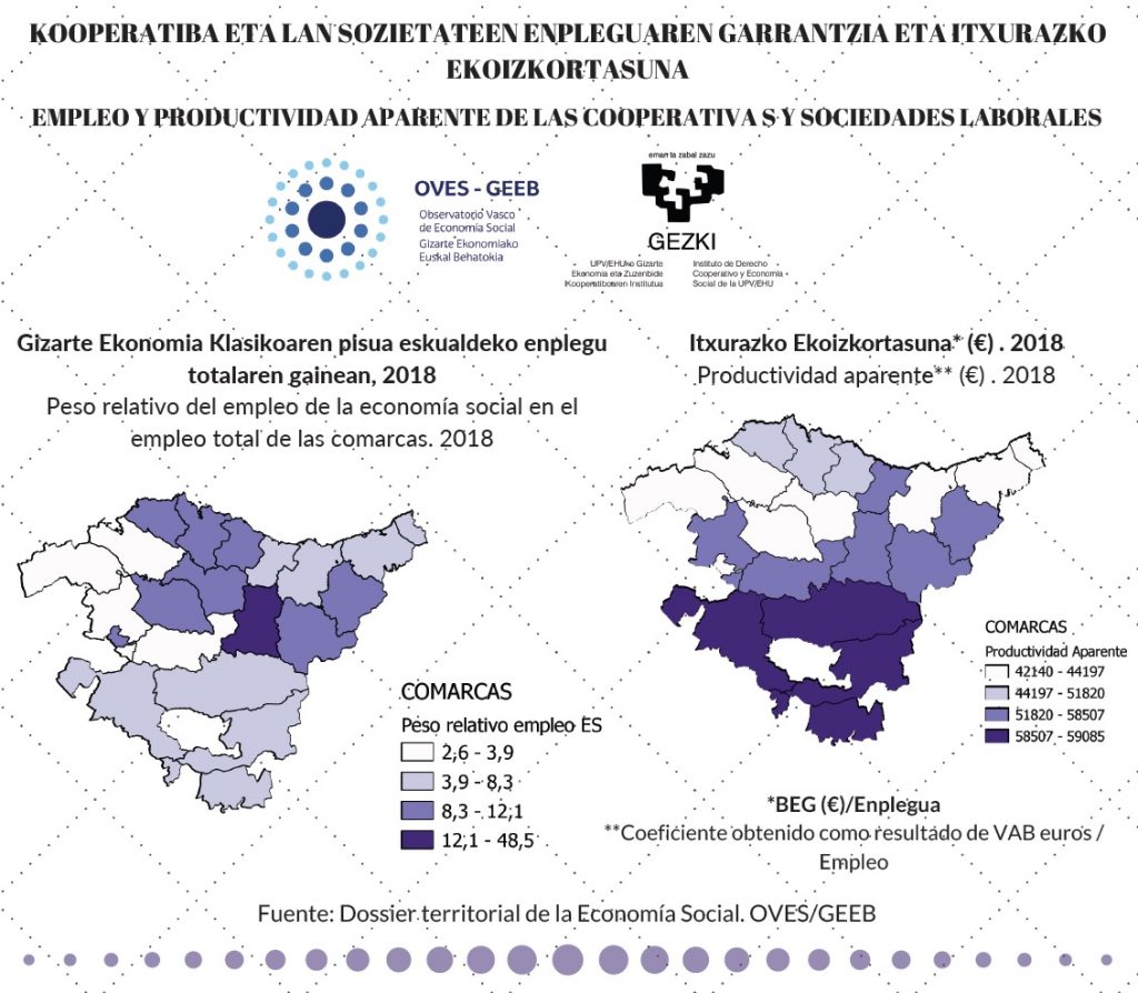 En los casos donde se encuentran las capitales vascas, si bien hemos visto que aglutinan buena parte del empleo de la Economía Social Clásica, en relación al total del empleo de sus comarcas no tienen un peso tan significativo, al ser territorios con un tejido empresarial amplio y diverso, con fuerte presencia del sector servicios. total del empleo de sus comarcas no tienen un peso tan significativo, al ser territorios con un tejido empresarial amplio y diverso, con fuerte presencia del sector servicios.