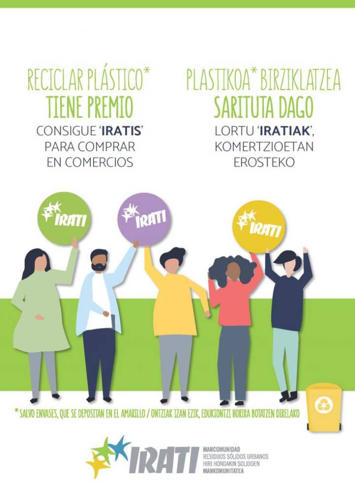 2019an, diru horrekin hasi dira ontzirik gabeko plastikoak —hondakinen edukiontzian utzi ohi direnak— bikain bereizten eta Garbigunera eramaten dituzten bizilagunei hobariak ematen. Iratiko HHSen Mankomunitateak 0,5 irati erosten ditu ondo bereizitako plastiko-kiloko.