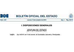 Lan-sozietateen araudi berria, urriaren 14ko 44/2015 'Lan-sozietateen eta Sozietate Parte-hartuen Legea', hilaren 15ean argitaratu zuten Estatuko Aldizkari Ofizialean. Data horretatik 30 egunera jarriko da indarrean.