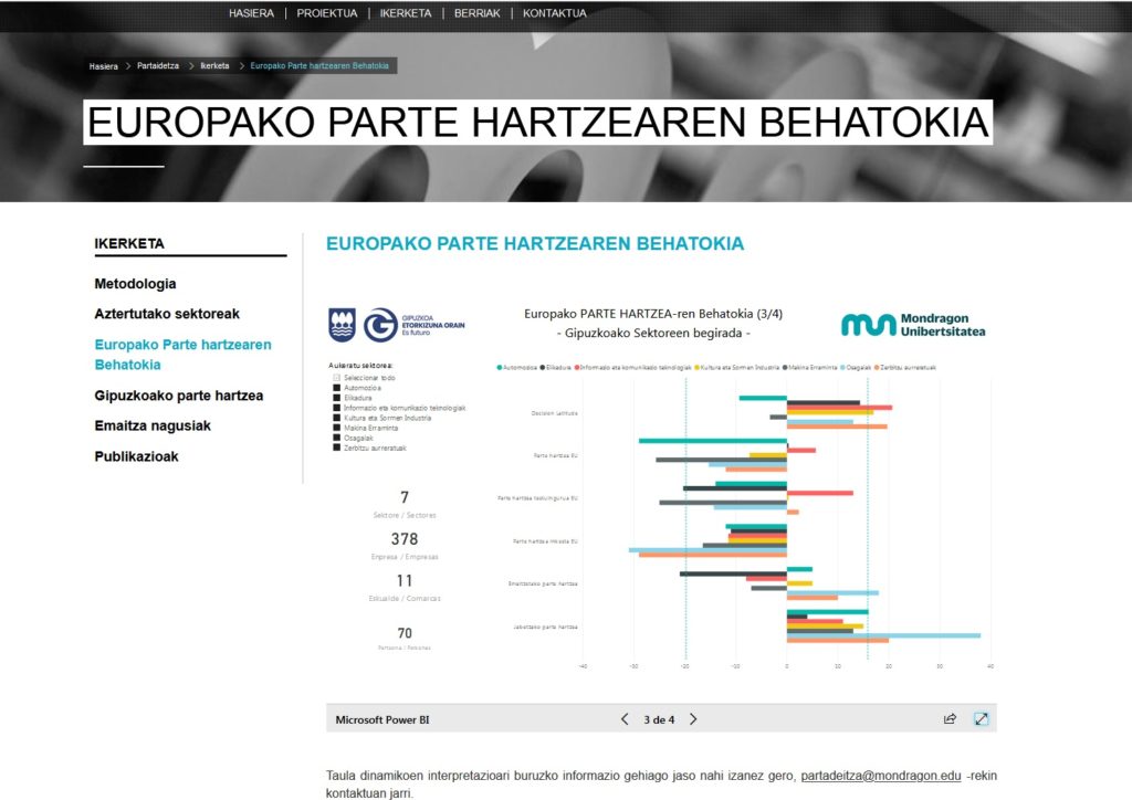 Bai langileek enpresetan duten partaidetzari buruzko behatokia, bai ondorioen liburua, Gipuzkoako Foru Aldundiarentzat egin ditu Mondragon Unibertsitateko ikertzaile-talde batek. Zehazki, Etorkizuna Eraikiz programaren esparruan daude bata eta bestea. Gipuzkoako garapen ekonomiko eta soziala bultzatzeko proiektuak jartzen ditu abian programa horrek, esperientzia pilotuen bidez. Hain zuzen ere, langileek enpresetan zenbateraino parte hartzen duten ikertzea da programaren barruan sartzen diren lan-ildoetako bat. Zehazki, partaidetza horrek langileen ongizatean, lurralde-garapenean eta enpresen emaitza ekonomikoetan dituen ondorioak aztertzea da ikerketaren helburua. Hala, liburuak argi utzi du langileek enpresetan parte hartzeak eragin onuragarria duela pertsonen ongizatean eta enpresen emaitza ekonomikoetan. «Enpresan partaidetza handiagoa izateak lotura zuzena du pertsonen ongizatearekin eta, aldi berean, erakundearen etekin ekonomiko handiagoarekin», azpimarratzen du liburuak.