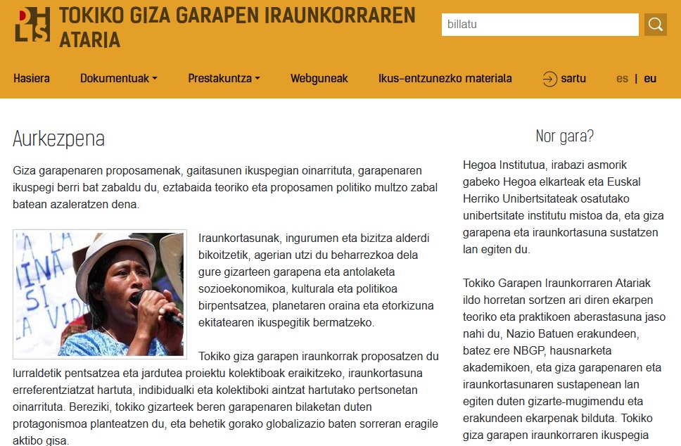 Hegoa Institutuak Tokiko Garapen Iraunkorraren Atari berriztatua aurkeztu du. Erabilera libreko erramienta hau diseinatzerakoan ikasleak, irakasleak zin ikertzaileak izan dituzte buruan, baita garapenarekin lotuta dauden arloetako profesionalak eta erakundeak ere.