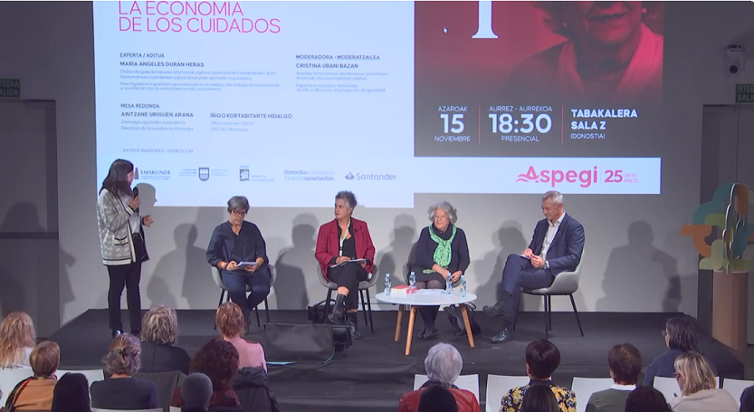 Mahai-inguru baten inguruan bildu ziren María Ángeles Durán Heras, ordaindu gabeko lanaren azterketan eta egitura sozial eta ekonomikoarekin duen harremanean espezializatutako katedraduna eta aditua, Aintzane Uriguen Arana Zorroaga Egoitzako zuzendaria eta Iñigo Kortabitarte Hidalgo OKencasako CEOa.